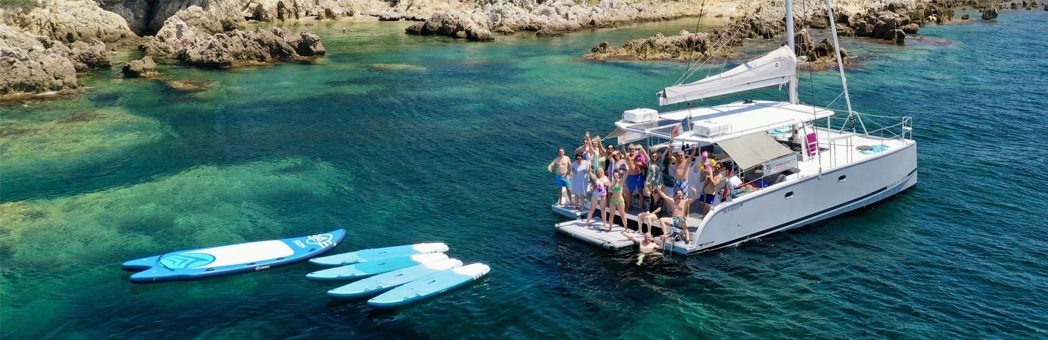 Votre capitaine connait toute les calanques paradisiaques pour la baignade et la pratique des activités nautiques : bouée tractée, kneeboard, stand up paddle, sauts...